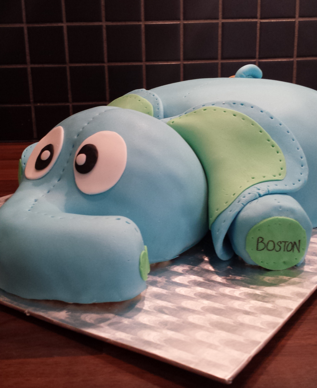 Lilla lilla Boston kom till världen för några månader sedan. Hans mamma Emma frågade om jag kunde göra 2 tårtor med elefanter. Boston är en blå person så hon ville att det skulle gå i just den färgen.